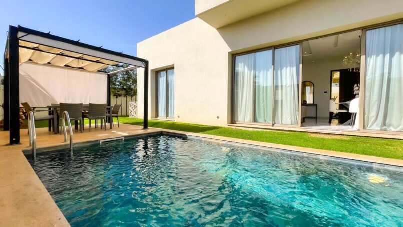 La villa est située dans une résidence calme, familiale, et sécurisée avec gardien + caméra de surveillance 24h/24.