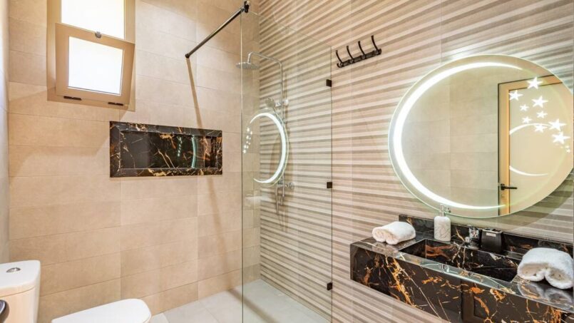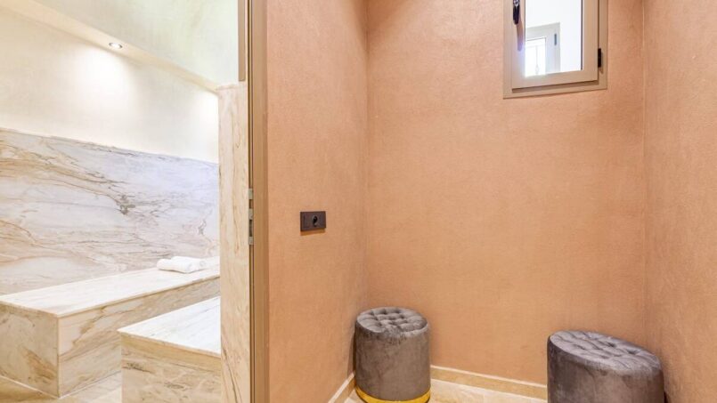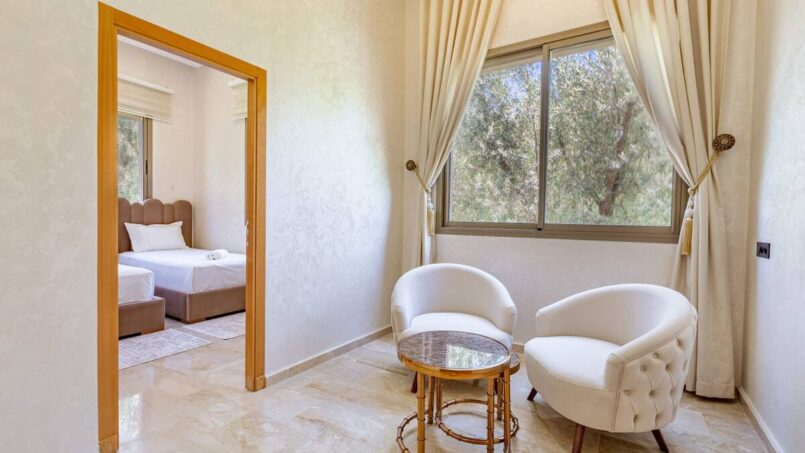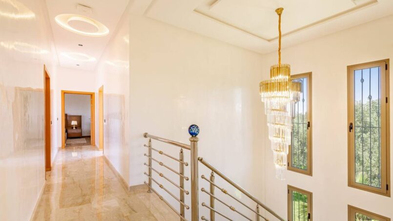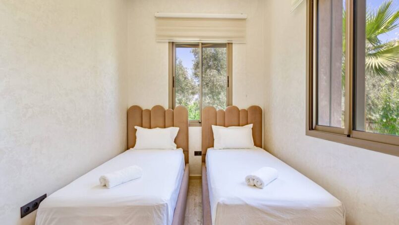 La villa possède 4 grandes suites et une chambre avec 2 lits simple chacune munies munie de dressing. Des espaces de vie spacieux et élégamment meublés créent une ambiance chaleureuse où vous pourrez vous détendre et vous ressourcer. Le salon impressionnant est idéal pour des moments de divertissement et de convivialité.