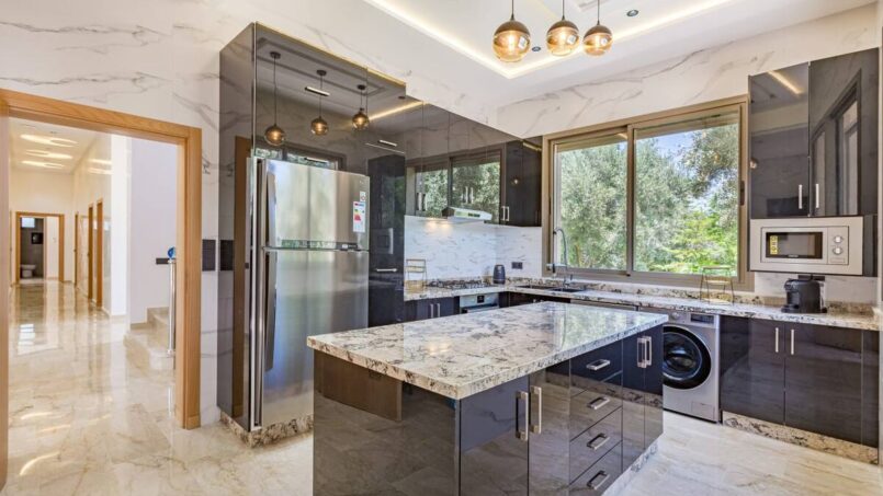 La cuisine entièrement équipée est un paradis pour les amateurs de gastronomie, où vous pouvez préparer des repas savoureux à partir de produits locaux frais. Une atmosphère accueillante règne dans la villa, créant un équilibre parfait entre intimité et convivialité.