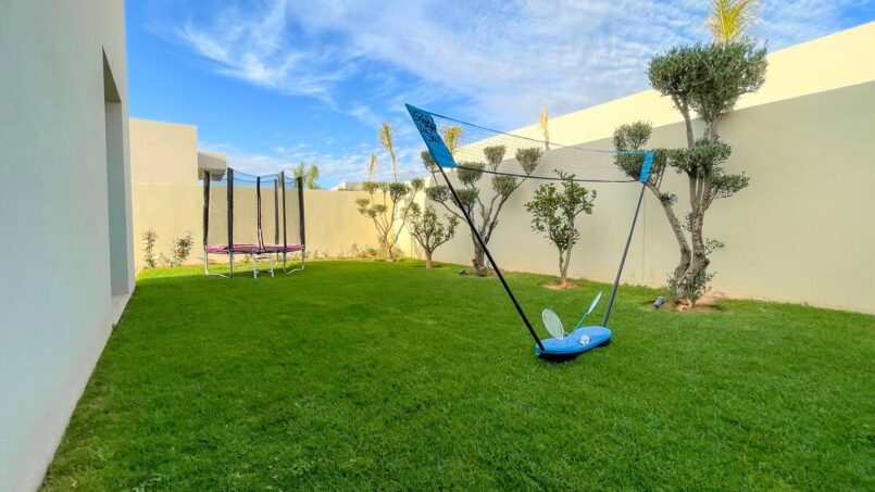 – Un jardin avec jeux extérieurs (trampoline, badminton, cages de foot)
