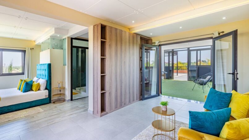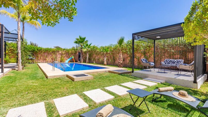 et elle est située à 15 kilomètres de Marrakech (sur la route de Ouarzazatte) + 600 mètres de piste très praticable.