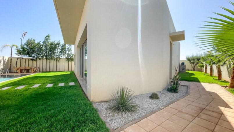 La villa est située dans une résidence calme, familiale, sécurisée avec gardien et caméra de surveillance 24h/24. Le lotissement se trouve à 20 minutes du centre ville et à proximité directe de l’Hôtel Oberoi et l’école américaine de Marrakech.