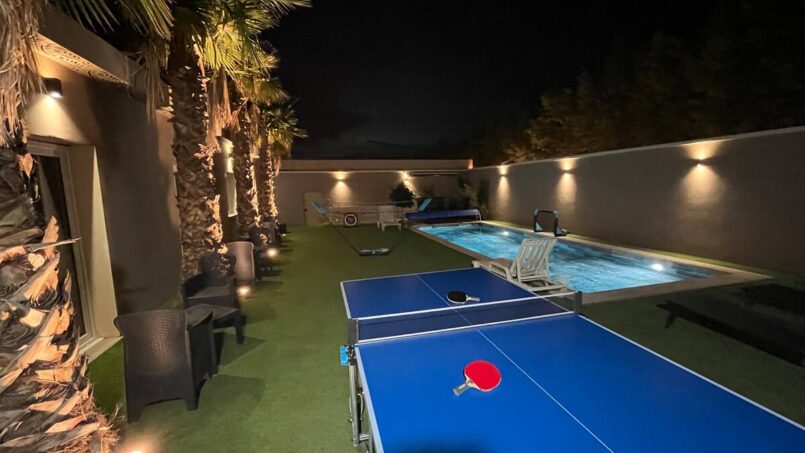 La villa vous offre tout le confort moderne. Profitez d’une piscine chauffée sans vis-à-vis, idéale pour la détente et la baignade en toute intimité. De plus, nous vous proposons une connexion internet rapide grâce à la fibre optique 100 Giga et une Smart IPTV pour vos divertissements. Des activités variées vous attendent : défiez vos amis au baby-foot, à la table de ping-pong, ou au badminton, et initiez-vous même au tir à l’arc.
