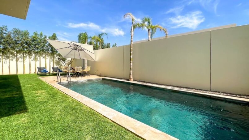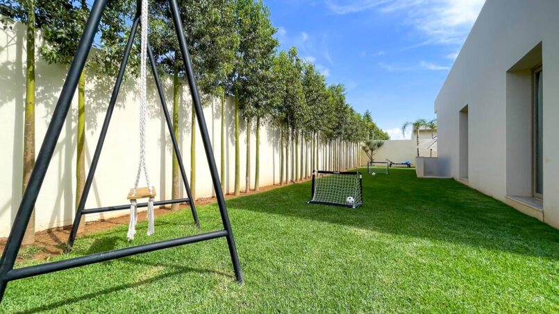 La villa est située dans une résidence calme et familiale, sécurisée avec gardien et caméra de surveillance 24h/24. Le lotissement se situe à 20 minutes du centre ville et est à proximité directe de l’Hôtel Oberoi et l’école américaine de Marrakech.